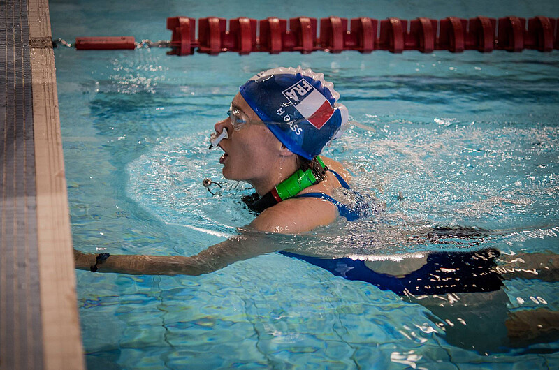 Sa discipline de prédilection ? L’apnée dynamique, catégorie 16 x 50 m. Un subtil mélange de vitesse et d’endurance. « C’est elle qui m’a choisie ! » L’apnée statique, en revanche, très peu pour elle. « Je m’ennuie trop rapidement ! » Même chose côté vie professionnelle, qu’elle envisage déjà, à la fin de son master Bioinformatique (car on ne vit pas de la pratique de l’apnée, même à haut niveau). Si aucune idée précise ne se dessine, elle sent que « le travail de bureau » n’est pas fait pour elle. À travers son stage de fin d’études au laboratoire ICube, elle espère aussi retrouver une dimension qui lui plaît dans l’apnée : le travail d’équipe. Car si ce sport paraît à première vue éminemment solitaire, « on n’est rien sans les coachs qui nous poussent ». Les siens sont basés au Cetace (Centre d’entraînement technique d’apnée en compétition de l’Est) de Mulhouse et à l’Acal (Aquatic club d’Alsace et de Lorraine), à Strasbourg.