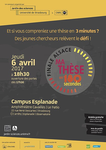 Le public est invité à venir en nombre assister à la finale régionale du concours Ma thèse en 180 secondes jeudi 6 avril dès 17h30 dans le grand amphithéâtre Cavaillès du Patio pour un grand moment de science et de partage.