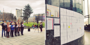 Cette proposition, qui interpelle ou déroute les usagers du campus – c’est le but – émane du Collectif X. À Saint-Étienne (leur ville d'origine), Villeurbanne, Bion ou Manosque, où des résidences sur le même modèle ont ou vont être menées, « l’objectif est à chaque fois le même : changer le regard sur la ville, en recueillant les visions et les usages de ses habitants, permanents et de passage », explique François Gorrissen, l’un des comédiens du Collectif X, où se mêlent artistes et urbanistes.