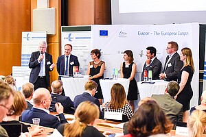 Les résultats des groupes de travail constitués dans le cadre du projet Interreg étaient au cœur de la présentation assurée par Hans-Jochen Schiewer, président d’Eucor – Le Campus européen et recteur de l'université de Fribourg-en-Brisgau, et différents représentants des universités membres du groupement. Avec l'adoption du plan stratégique commun pour la période 2019-2023, qui prévoit des mesures tournées vers l’avenir dans les domaines de la recherche, l’innovation et la formation, les cinq universités du groupement ont renforcé leur coopération. Quatre axes thématiques prioritaires ont été définis : « Sciences et technologies quantiques », « Médecine personnalisée – médecine de précision », « Développement durable » et « Identités européennes ». Dans le domaine des sciences quantiques, l’Union européenne finance déjà à hauteur de 4,2 millions d’euros le programme doctoral international « Quantum Science and Technologies at the European Campus » (QUSTEC) développé par le Campus européen.