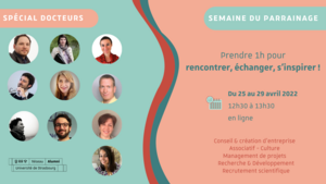 Suite au succès des éditions passées, le service relation Alumni réitère sa semaine du parrainage, un temps fort en rencontres inspirantes. Du 25 au 29 avril, à la pause déjeuner, mettez-vous en relation en visio avec des professionnels qui partagent leur expérience, particulièrement après un doctorat pour cette session.