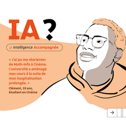 « J'ai pu me réorienter de Math-Info à Cinéma. L'université a aménagé mes cours à la suite de mon hospitalisation prolongée ». Comme Clément, à l'Université de Strasbourg chaque étudiant peut bénéficier d’un accompagnement, d'un soutien individuel pour adapter son parcours à ses aspirations, son profil ou ses besoins spécifiques. IA comme Intelligence Accompagnée