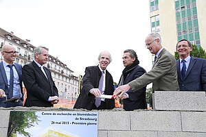« Le CRBS est le symbole du croisement des disciplines qui permet une approche innovante du malade pour une médecine personnalisée », a indiqué Alain Beretz, président de l'Université de Strasbourg. « C'est un projet très fort à construire ensemble. Ce bâtiment – et c'est la vision que j'ai de la recherche biomédicale – va du patient à la recherche la plus fondamentale », a ajouté Yves Lévy, président directeur général de l'Inserm. « Nous assistons aujourd’hui à un baptême fondateur. Le CRBS, traduction d’une passion, contribue à redonner à la recherche sa place d’excellence. Son architecture et son revêtement extérieur aux effets de couleur très fins sont le reflet de l’excellence, pôle d’attraction pour les futurs chercheurs », a, quant à lui, affirmé Jean Sibilia, le doyen de la Faculté de médecine.
