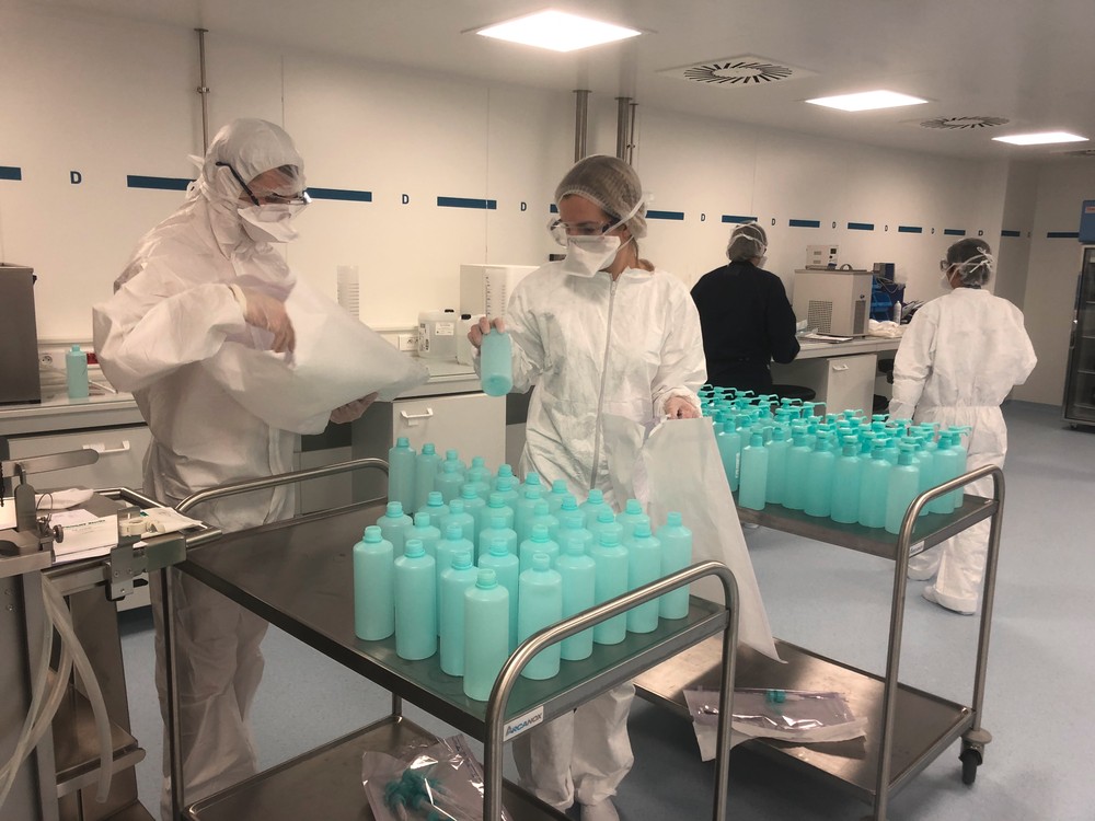Quand ils ne s’engagent pas dans la réserve sanitaire, les étudiants des autres facultés de santé s’impliquent également à leur niveau dans l’effort de soin. Ainsi, une vingtaine d’étudiants et des enseignants de la Faculté de pharmacie, solidaires des Hôpitaux universitaires qui en manquent, se sont lancés dans la production de solution hydro-alcoolique (SHA), dans les locaux ultra-sécurisés d’EASE. En chirurgie dentaire, les étudiants viennent assister les titulaires séniors et les internes au service d’urgence qui est assuré quotidiennement ; ils sont mobilisables également en soutien des services médicaux. Étudiants en premier cycle de maïeutique (sages-femmes) et en soins infirmiers peuvent aussi se porter volontaires pour assurer la garde des enfants de soignants. Des étudiants en maïeutique du 2e cycle, volontaires et spécialement formés, couvrent 24h/24 les gardes en salle de naissance. « Le renfort de ces étudiants a permis jusqu’à aujourd’hui au père d’assister à la naissance de son enfant », précise Claude Doyen directrice de l'école de sages-femmes. Les étudiants volontaires peuvent également se voir proposer des vacations pour assurer la prise en charge des patients (brancardage, fonctions supports…) ou soulager les permanences téléphoniques du Samu (15). Autant de bonnes volontés fort utiles, car « il faut s’attendre à des semaines d’effort contre le virus, le pic étant attendu pour mi-avril », souligne encore Jean Sibilia. « L'implication sur le terrain de nos étudiants, que ce soit lors de leurs stages en milieu hospitalo-universitaire, en officine où ils sont en première ligne ou lors d'actions plus ponctuelles, comme la fabrication de SHA, sera valorisée dans leur cursus », complète Jean-Pierre Gies.
