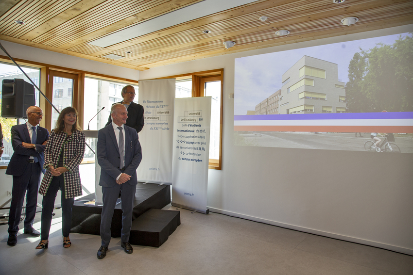 Située à l'angle de la rue Pierre-Montet et de la place du Foin, en face de la bibliothèque l'Alinéa, la Maison des personnels a été inaugurée vendredi 20 septembre, en présence de Jean-Luc Marx, préfet de la Région Grand Est et du Bas-Rhin, Sophie Béjean, rectrice de l'Académie de Strasbourg et Michel Deneken, président de l’Université de Strasbourg. La cérémonie a été suivie des portes ouvertes du Service pour la promotion de l'action sociale (Spacs) afin de permettre à tout un chacun de s'approprier ce nouveau lieu, voir les œuvres de l'exposition artistique des personnels et des étudiants sur le thème "Miroirs" et échanger autour d'une collation conviviale sur la terrasse du bâtiment.