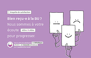 Jusqu'au 28 février 2019, les bibliothèques de l’Université de Strasbourg recueillent les avis de leurs usagers sur l’accueil et les services qu’elles proposent.