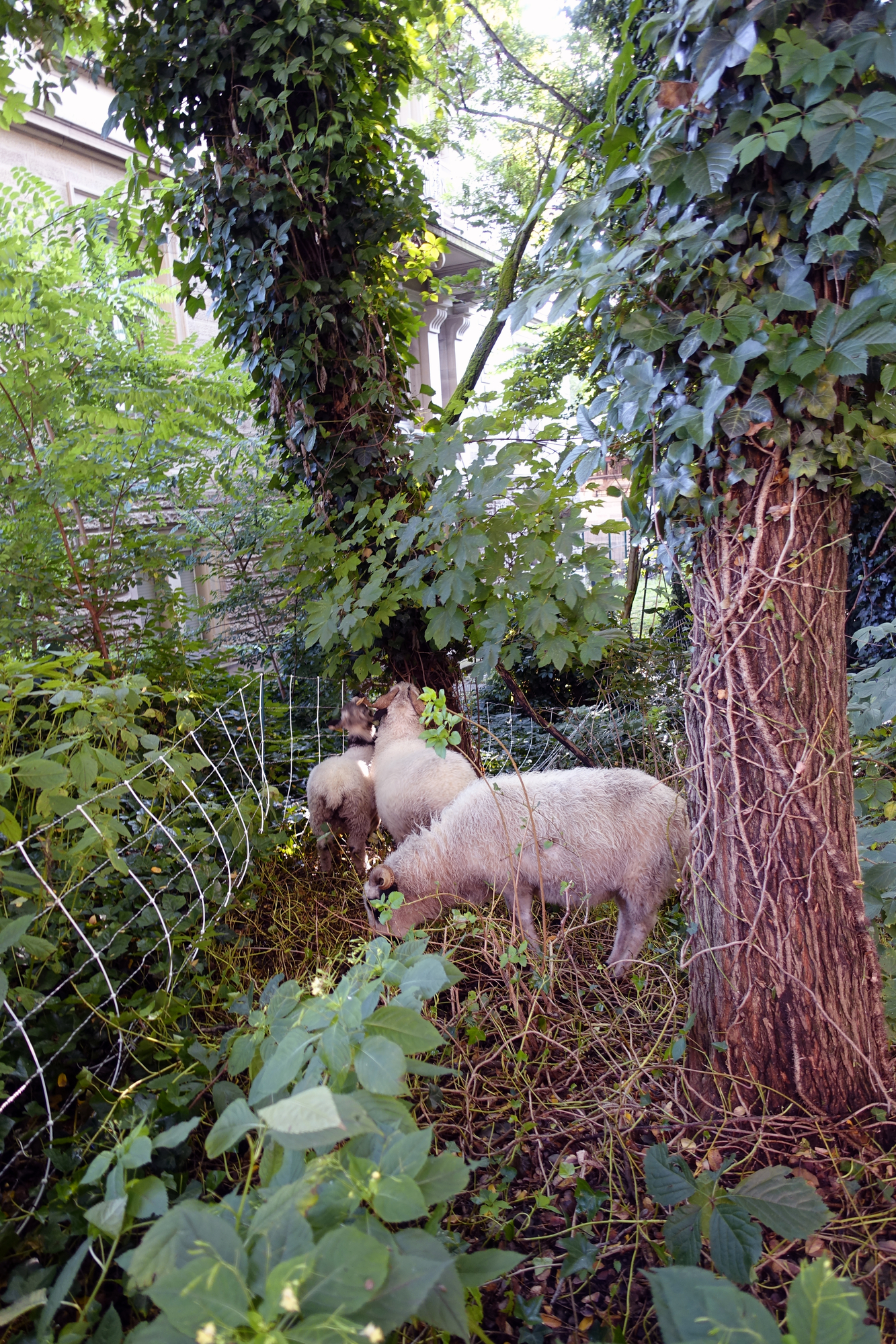Dans les jardins de l’Observatoire astronomique de Strasbourg, quelques bêlements ont remplacé le bruit de la tondeuse. Petites cornes en spirale, museau et yeux cernés de noir, trois moutons de race Thônes et Marthod sont à l’œuvre depuis juillet.