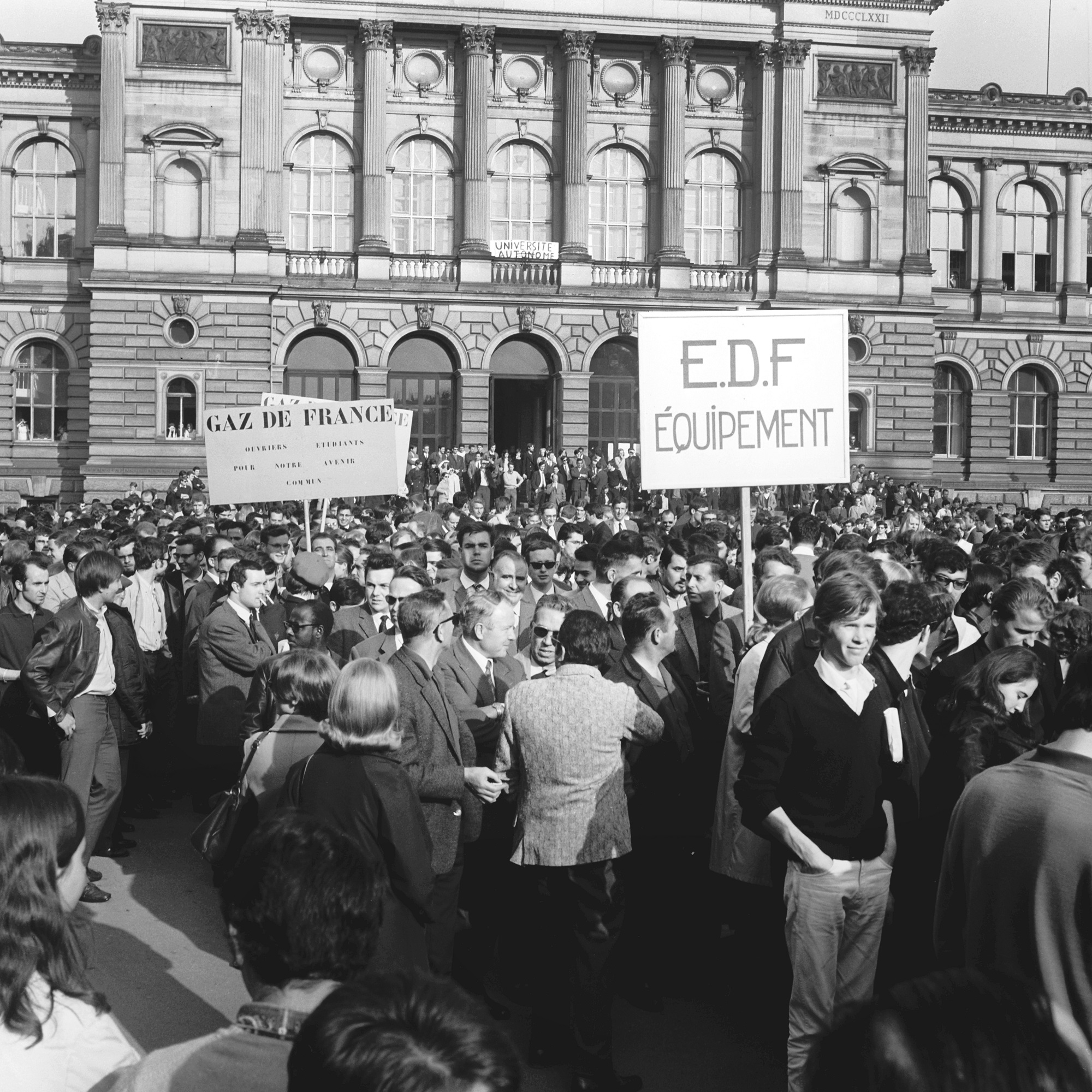 Sans oublier l’histoire de l’attaque du Palais U : une manifestation gaulliste était partie de la place Kléber. Arrivée place de la République, les manifestants voient un drapeau rouge flotter sur le Palais U fermé de l’intérieur par les étudiants. « Provocation ultime qui les fait foncer sur le bâtiment en hurlant. Ils ont lancé quelques pierres et cassé quelques vitres. Ça s’est terminé au bout d’une heure. » Fin juin tout le monde est parti en vacances et les étudiants ont finalement passé des examens allégés en septembre. « La leçon de Mai 68 qui pour moi a été un événement international, c’est qu’un enseignant universitaire ne doit jamais se prendre au sérieux », conclut Jean-Christophe Pellat, qui a participé aux premières élections des étudiants aux conseils de l’université.