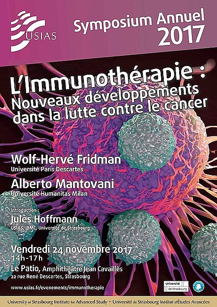 Jules Hoffmann, lauréat du prix Nobel de médecine 2011 pour sa recherche sur l'immunologie innée. Celui-ci donnera une introduction du thème. Les discussions porteront sur le développement et l'avenir de l'immunothérapie contre le cancer. Wolf-Hervé Fridman a publié la première démonstration d'une réponse immunitaire du patient à son propre cancer. Ses publications ont modifié le paradigme des interactions hôte/cancer en démontrant que la « contexture immunitaire » est le principal facteur pronostique des cancers humains. Le travail du professeur Alberto Mantovani a permis de prouver que l'inflammation est une composante essentielle du microenvironnement tumoral, une contribution cruciale au changement d'une vision centrée sur les cellules cancéreuses à une vision englobant la niche écologique.