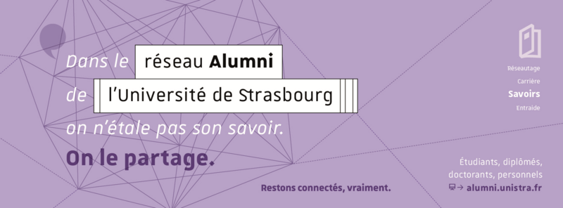 Le réseau Alumni de l’Université de Strasbourg et de ses trois anciennes universités (Louis Pasteur, Marc Bloch, Robert Schuman) se compose aujourd’hui de plus de 17 000 adhérents à travers le monde. L’objectif du réseau est de créer du lien entre diplômés et étudiants actuels qui sont les Alumni de demain. « Notre mission est de renforcer et de rendre concrets les liens de solidarité et d’entraide entre les générations, pour l’emploi et la carrière grâce à un réseau social professionnel virtuel et réel, note Agnès Villanueva, directrice du service de relations Alumni de l’Université de Strasbourg. Chez nous, on ne multiplie pas forcément les contacts, on se rencontre ! »
