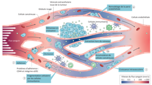 Les cellules cancéreuses exploitent largement les fluides biologiques pour se disséminer dans l’organisme et former des métastases à distance des tumeurs primaires. Ainsi, si certaines empruntent directement la circulation sanguine, d’autres la rejoignent en s’échappant d’abord de la tumeur par le liquide interstitiel et le réseau lymphatique pour coloniser ensuite les ganglions lymphatiques avant de rejoindre le sang.
