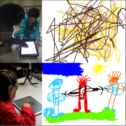 Les scientifiques ont collecté des dessins réalisés au doigt sur écran tactile par des enfants, des adultes humains et des chimpanzés. Ils ont ensuite traité le tracé du dessin de la même manière que pour la trajectoire d’un animal se déplaçant dans son environnement. En effet, un animal doit se déplacer de manière efficace sur son territoire entre différents points d’intérêt et non de manière aléatoire. Cette efficacité a été mise en équation et les auteurs de cette recherche ont appliqué cette équation pour comprendre l’intention dans le dessin. L’indice mathématique spatial fractal qui découle de ces analyses se révèle plus faible lorsque le tracé tend vers l’aléatoire, et plus élevé lorsque celui-ci est orienté. Son application permet de mettre en évidence une différence entre les marques produites par les chimpanzés et celles réalisées par l’ensemble des humains y compris les plus jeunes de l’étude, des enfants de trois ans. Les chimpanzés réalisent des marques moins orientées, mais pas aléatoires pour autant. Plus encore, des différences entre les classes d’âge ont été constatées. Ainsi, en grandissant, les enfants semblent gagner en efficacité de représentation, leurs réalisations allant droit au but, sans ajouts d’éléments superflus. En revanche, les adultes présentent un indice plus faible et donc une efficacité diminuée de par l’addition de détails nombreux et non utiles à la compréhension du dessin.