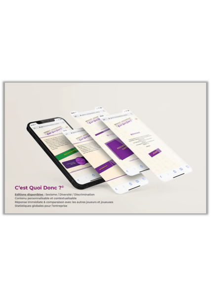 À l’origine un jeu de cartes, « C’est Quoi Donc ? » a été développé par la société Accordia, un cabinet de conseil en égalité et diversité qui propose des formations et le développement de matériel de sensibilisation. Les établissements associés de l’Université de Strasbourg sont les premiers à disposer de la version numérique du jeu. Ce jeu est financé par le schéma directeur de la vie étudiante Alsace qui rassemblement des établissements du contrat de site afin de réaliser des actions à destination des étudiantes et étudiants.