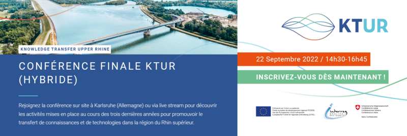 Le jeudi 22 septembre 2022, les douze partenaires universitaires du projet européen Knowledge Transfer Upper Rhine, sous la coordination de l'Institut de technologie de Karlsruhe (KIT), et leurs partenaires du monde socio économique, présenteront leurs résultats en matière de transfert de connaissances et de technologies. Grâce à ce projet, de nouvelles structures pour les coopérations, des offres transfrontalières pour les créations d'entreprises et un réseau à long terme pour le transfert de connaissances et de technologies entre l'Allemagne, la France et la Suisse ont vu le jour. Lors de la conférence, le KIT passera le relais à l’Université de Strasbourg pour la coordination du réseau KTUR.