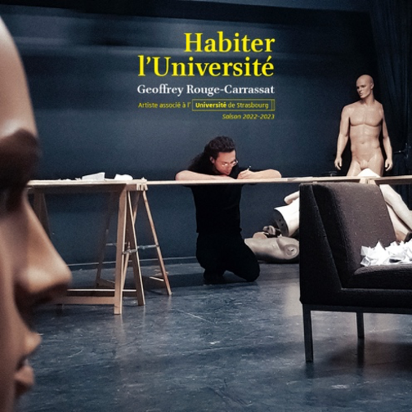 Auteur, metteur en scène et comédien, Geoffrey Rouge-Carrassat, est en résidence « Habiter l’Université » pour les saisons 2022-23 et 2023-24 pour replacer le geste artistique au cœur de l'action culturelle universitaire. L’artiste invité mène en parallèle un doctorat au Conservatoire National Supérieur d’Art Dramatique (CNSAD) autour des dispositifs théâtraux ludiques qui offre aux comédien·nes une certaine jouabilité et place la thématique du « jeu » au centre de son geste artistique.