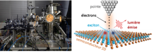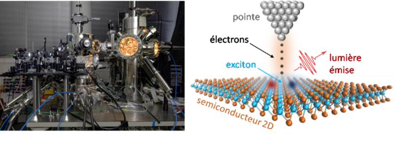 Grâce à cette technique novatrice, les scientifiques ont observé l’émission de lumière issue des électrons excités, aussi appelés excitons, dans un semi-conducteur 2D couplé à une couche de graphène. « En pratique, nous avons dû concevoir, dans un environnement contrôlé, une hétérostructure adaptée à des mesures optiques au sein d’un microscope à effet tunnel opérant sous ultra-vide à très basse température, -267,15 °C », mentionne Stéphane Berciaud.