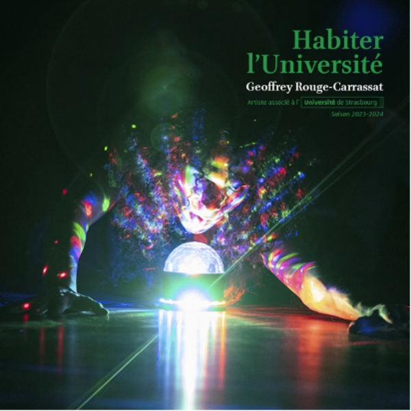 Auteur, metteur en scène et comédien, Geoffrey Rouge-Carrassat, est en résidence « Habiter l’Université » pour replacer le geste artistique au cœur de l'action culturelle universitaire. L’artiste invité mène en parallèle un doctorat au Conservatoire National Supérieur d’Art Dramatique (CNSAD) autour des dispositifs théâtraux ludiques qui offre aux comédien·nes une certaine jouabilité et place la thématique du « jeu » au centre de son geste artistique.