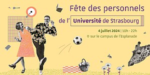Après le succès de la première édition, l’Université de Strasbourg organise une seconde édition de sa fête des personnels le jeudi 4 juillet, de 10h à 22h, sur le campus de l’Esplanade. Cette journée sera l’occasion pour ses plus de 6 000 personnels de vivre des moments de partage et de détente lors de cette journée banalisée, dans un cadre convivial et une ambiance festive autour d’une cinquantaine d’activités et temps forts.