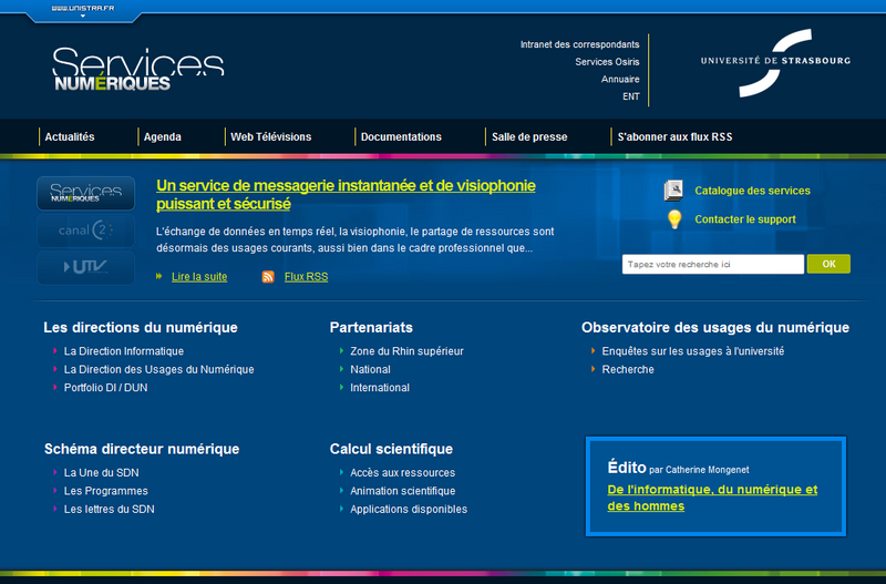 Nouvelles technologies, parc informatique, plateforme pédagogique, web télévisions, podcasting, observatoire des usages... le nouveau site Services Numériques de l'Université de Strasbourg permet d'accéder en quelques clics à l'ensemble des actualités, des projets, des réalisations et des partenariats de l'université dans le domaine du numérique.