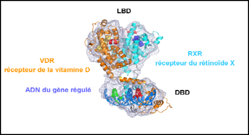 Pour la première fois, une équipe de l'Institut de génétique et de biologie moléculaire et cellulaire (IGBMC, Université de Strasbourg/CNRS/Inserm) a réussi à photographier en entier, en 3D et à haute résolution (1), une petite molécule vitale, enfermée au coeur de nos cellules : le récepteur de la vitamine D (VDR). Publiée le 18 janvier 2012 dans la revue The EMBO Journal, cette étude apporte des informations clefs sur la structure 3D et le mécanisme d'action du récepteur au niveau moléculaire. Ces données sont cruciales pour la recherche pharmaceutique, le VDR étant impliqué dans de nombreuses maladies, comme les cancers, le rachitisme et le diabète de type 1.