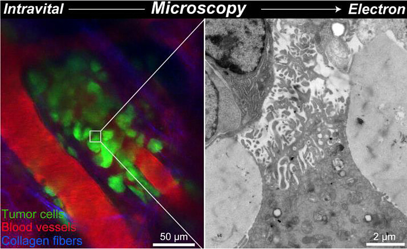 Dans le domaine du cancer, pouvoir étudier en microscopie les cellules tumorales vivantes pour déterminer leur capacité à devenir invasives, métastasiques et donc dangereuses, reste un défi. Il vient d’être relevé par l’équipe de Jacky Goetz (unité Inserm 1109/université de Strasbourg) en collaboration avec celle de Yannick Schwab (European Molecular Biology Laboratory, Heidelberg). Ensemble, ils ont mis au point une nouvelle approche de microscopie dite corrélative qui pourrait enfin permettre de comprendre pourquoi et comment une tumeur devient agressive.