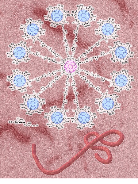 Une équipe internationale de chimistes a développé une méthode ultra-rapide pour réaliser la synthèse de molécules ramifiées géantes, dotées d’une activité antivirale. En effet, ces méga-molécules inhibent très efficacement l’entrée du virus Ebola dans des cellules en culture : leurs très nombreux bras (jusqu’à 120) portent des sucres qui se lient fortement au récepteur utilisé comme porte d’entrée par le virus. Ces travaux, réalisés par des chimistes du Laboratoire de chimie moléculaire (CNRS/Université de Strasbourg) et du Laboratoire de conception et application de molécules bioactives (CNRS/Université de Strasbourg), en collaboration avec des collègues belges et espagnols, sont publiés le 9 novembre 2015 dans la revue Nature Chemistry.