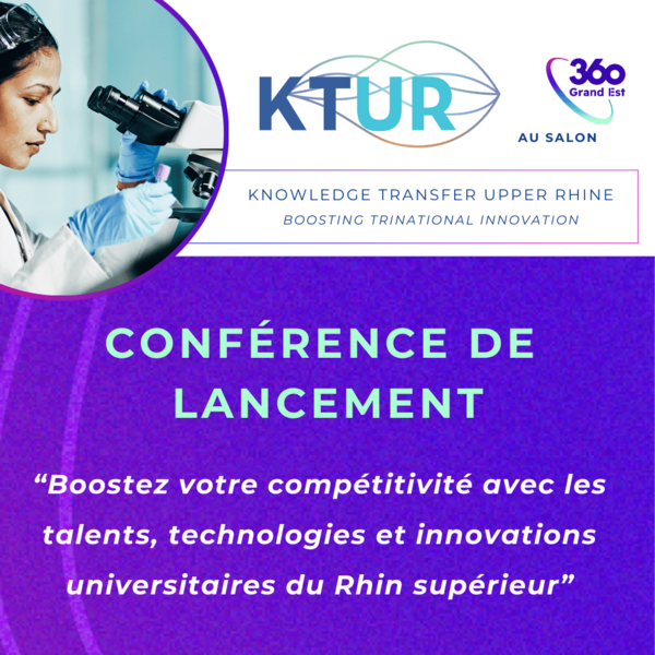Knowledge Transfer Upper Rhine² (KTUR²) est un consortium* de 15 partenaires coordonné par l’Université de Strasbourg. Son objectif : accélérer le transfert de technologies dans la région transfrontalière du Rhin supérieur en facilitant l’émergence de start-ups, en accompagnant les entreprises dans la formation de leurs salariés et en leur facilitant l’accès aux innovations.