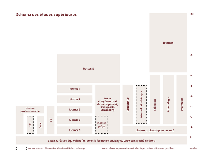 Ces diplômes sanctionnent un nombre d'années d'études variables selon les spécialités. La licence Sciences pour la santé proposée à l'Unistra mène à des études longues :