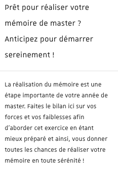 - d’aider les étudiants à cibler, parmi plusieurs dispositifs (de nature, de durée ou de niveau différents), lesquels sont les plus adaptés à leurs contraintes et à leurs habitudes de travail