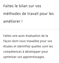 - d'encourager les étudiants à prendre du recul par rapport à leurs compétences et à faire un bilan de leurs besoins et de leurs difficultés.