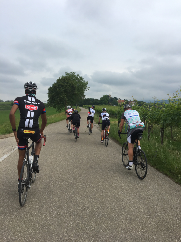 Avant de s’attaquer au plat de résistance, le Schauinsland, le parcours du groupe rouge clair auquel nous nous sommes joints aujourd’hui, emprunte une effrayante pente de deux kilomètres à 15%, histoire de se chauffer les muscles !