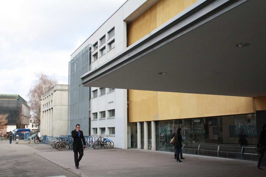 Les noms des bâtiments sont fixés par les universités et sont donc forcément liés à leur histoire. Pour mémoire, l’Université de Strasbourg, telle qu’on la connait aujourd’hui, est née en 2009 de la fusion des 3 universités disciplinaires : l’Université Louis-Pasteur, l’Université Marc-Bloch et l’Université Robert-Schuman. À Strasbourg, il est d'usage de choisir les noms de bâtiments en fonction d'une discipline ou en lien direct avec l'architecture et, pour nombre d'entre eux, avec une consonance antique ou littéraire.