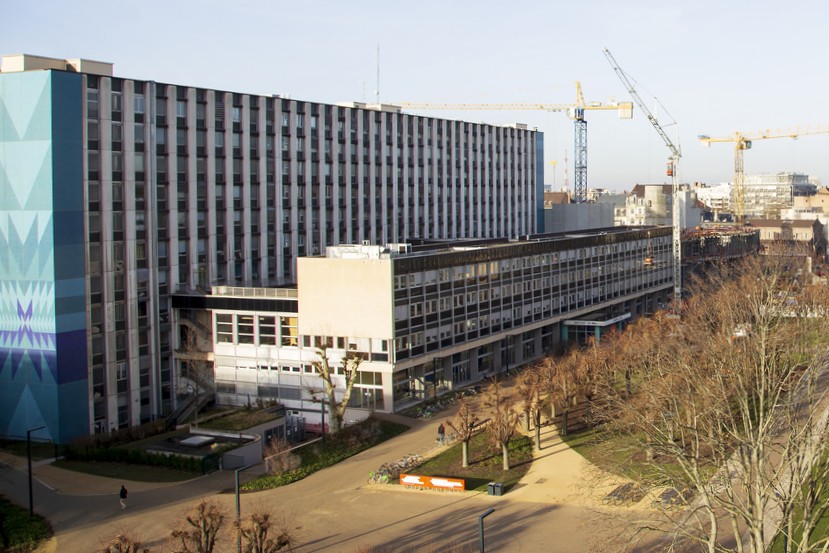 A Strasbourg, le decumanus était représenté par l’axe de la rue des Hallebardes et de la rue des Juifs, et le cardo suivait l’axe de la rue du Dôme. Le choix de construire ce nouveau bâtiment au cœur de l’hôpital résulte d’une volonté des acteurs urbains et des porteurs du projet d’ouvrir l’espace de l’hôpital civil vers le cœur de la ville, avec la création d’un axe Nord-Sud, de la ville et des quais vers le site de l'hôpital. L'une des entrées principales de ce bâtiment s'ouvre sur cet axe, et offre, de par sa rue intérieure orientée Est-Ouest, un nouvel axe de déambulation qui est le cœur de l'activité de tous les acteurs du site, personnels comme étudiants. Les fouilles préventives avaient également mis en évidence une route Nord-Sud qui menait à l’une des portes de l’hôpital conservée à proximité.