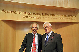 1 Au sortir de la guerre où il s’est illustré par ses faits de résistance, G. Canguilhem a laissé à la Revue d’Histoire et de Philosophie religieuse un article très suggestif sur « Hegel en France ». L’étude se conclut sur une référence édifiante à Simone Weil (1909-1943) et Jean Cavaillès (1903-1944), dont la vie sainte et héroïque a bien, n’en déplaise aux hégeliens de tous bords, un sens transcendant toute raison et irréductible à la logique du concept. C’est ce sens transcendant que, plus tard (lors de l’inauguration de l’Amphithéâtre Cavaillès, en 1967), Canguilhem, a désigné comme la « logique de la résistance ». Cette « logique de la résistance vécue jusqu’à la mort », incarnée en la personne de Cavaillès, ou de Simone Weil, c’est cette lueur d’humanité qui, dans ceux qu’on asservit, qu’on torture, qu’on assassine au nom d’on ne sait quelle barbare et délirante idologie, ne peut cependant jamais être éteinte, parce qu’elle est, comme dirait Pascal – autre mathématicien français – « d’un autre ordre ».